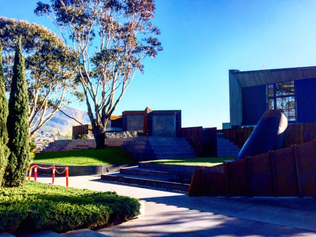 Jeden, den ich in Tasmanien kennengelernt hatte oder der irgendwann dort war, hat gesagt, dass MONA ein Muss ist. Ein Museum, von einem reichen Philanthropen – Gerüchte gehen herum, dass er sein gesamtes Vermögen beim Pokern gewonnen hat – einfach so an den Stadtrand von Hobart gebaut worden ist. Was drinnen ist?! Alles! Hauptsächlich moderne Kunst, aber was ist heutzutage schon keine moderne Kunst?!