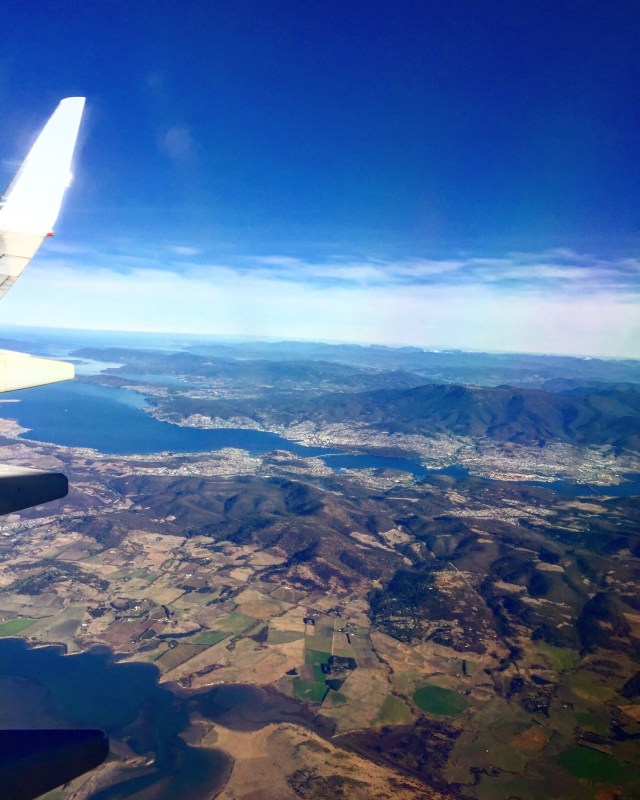 Schweren Herzens machte ich mich Montag in der Früh auf den Weg zum Flughafen in Melbourne. Die Stadt wollte mich anscheinend eh dabehalten, weil mein Flug nach Hobart über eine Stunde verspätet war. Und mit mir schon am Gate eine ganze Rugby-Mannschaft mit lauter 15-jährigen Burschen gewartet hat – und welch Überaschung, natürlich waren die auch auf meinem Flug… 😉 Dafür war schon der Anflug nach Tasmanien wirklich beeindruckend – und glücklicherweise wolkenlos!