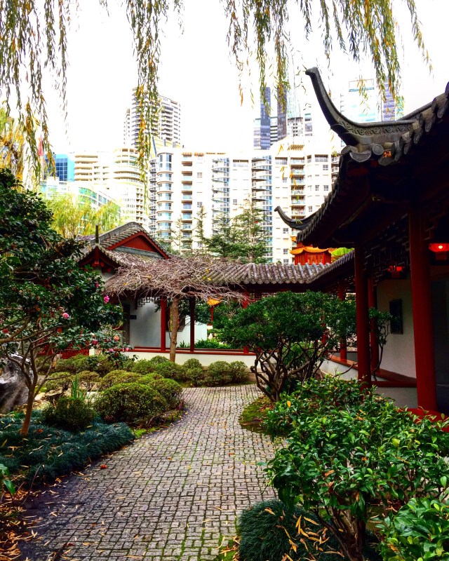 Und weil es dann in der Zwischenzeit doch zu regnen aufgehört hatte, bin ich dann noch in den Chinese Garden of Friendship. Eine grüne Oase inmitten der lauten, buten Stadt. Einfach toll! 😉