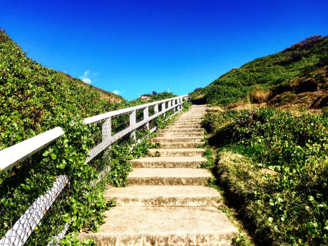 Wie oben schon beschrieben, haben wir am ersten Tag die linke Seite gewählt. Also blieb für den zweiten Tag die rechte übrig und das war genau unser Plan für den Tag. Ich war wieder mit Kira unterwegs, die mit dem gleichen Bus wie ich weiterfahren wollte, perfektes Timing also. Am Weg zum Memorial Walk kommt man am Bogey Hole vorbei, das von den damaligen Strafgefangegen in ein Steinplateu gemeißelt worden ist, um einen Meerwasserpool zu bekommen. Wir sind bist runter gegangen, leider war’s aber zu kalt, um wirklich schwimmen zu gehen…