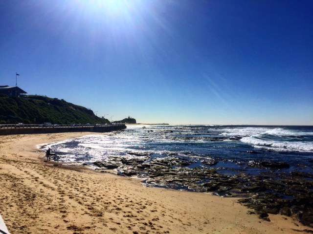 Ganz so viele Sehenswürdigkeiten gibt’s in Newcastle nicht, aber der Strand ist einfach imposant. Von unserem Hostel aus gibt’s im Prinzip zwei Routen für wunderbare Strandspaziergänge – links und rechts… 😉 Am ersten Tag in Newcastle war links angesagt, in Richtung Leuchtturm.