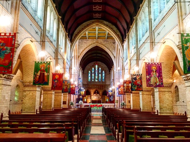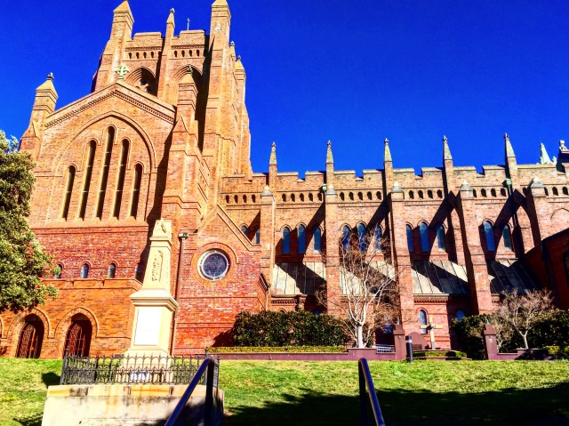 Der Ausblick von dort draußen war echt ziemlich geil! Weil aber die Stadt auch sonst einiges zu bieten hat, sind wir dann in die Stadt und haben die Kathedrale angeschaut. Auf einem Hügel mitten in der Stadt gelegen, die Stadt überblickend, mit Stufen hinauf, in die die Namen und Todesursachen der ersten Siedler der Stadt verewigt sind… Da haben wir uns lange aufgehalten – manche hatten leider recht makabere Todesursachen! Während einige „versehentlich ertrunken“ sind, sind andere anscheinend bewusst ertrunken, und das waren immer Strafgefangene… Ein Schelm, wer Böses denkt!