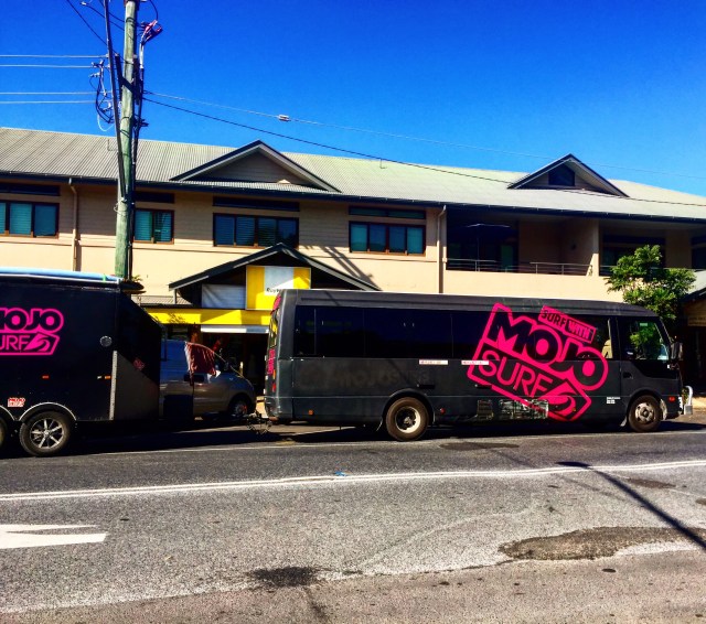 Freitag Mittag haben wir uns also erstmal in der Surfstation getroffen und sind dann mit diesem Bus zu einem etwas weiter entfernten Strand gefahren. Und ab da gibt’s leider keine Fotos mehr, weil ich mit Überleben beschäftigt war! 😉