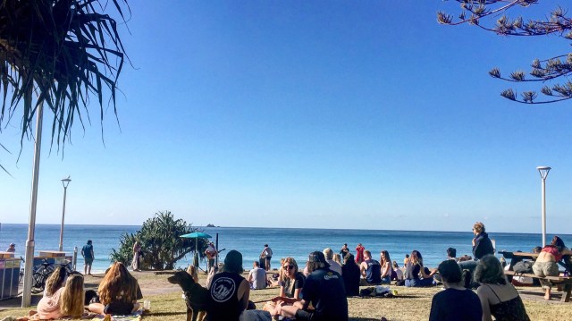 So chillen alle am Strand in Byron beziehungsweise auf dem Stück Gras oberhalb. Dort ist ab Mittag immer Straßenmusik angesagt, aber richtig gute – mit Anlage und allem drum und dran! Den Ausblick und die Atmosphäre habe ich fast jeden Abend genossen, weil mein Hostel glückicherweise gleich um die Ecke war. Fast am Strand und direkt neben einem Aldi, eine bessere Lage für ein Hostel gibt’s eigentlich gar nicht! Die beiden Chill-Tage haben echt gut getan, nach einem Monat volle Power auf Achse! Und keine Sorge, die Tage darauf waren dann auch wieder spannender… 😉